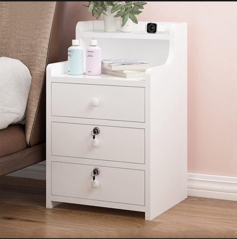 - সহজ ও আধুনিক ডিজাইনের ৩ ড্রয়ার হাই বেডসাইড টেবিল, লক ক্যাবিনেট সুবিধাসহ।